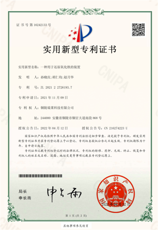 堅(jiān)持成果培育轉(zhuǎn)化。持續(xù)強(qiáng)化對(duì)“雙平臺(tái)”(瑞萊科技公司擁有“安徽省企業(yè)技術(shù)中心”和“安徽省工程技術(shù)研究中心”)的維護(hù),組織實(shí)施階段性科研任務(wù),提前完成了安徽省企業(yè)技術(shù)中心2022年度評(píng)價(jià)工作;積極開展銅陵市“1155”創(chuàng)新創(chuàng)業(yè)專業(yè)技術(shù)人才團(tuán)隊(duì)年度考核以及“2021年度能效領(lǐng)跑者”項(xiàng)目申報(bào)。以專利為突破口,加強(qiáng)科技成果的培育和轉(zhuǎn)化,今年以來,完成2項(xiàng)安徽省科技成果登記,完成4項(xiàng)專利申報(bào)(其中發(fā)明專利2項(xiàng),實(shí)用新型專利2項(xiàng)),成功獲得實(shí)用新型授權(quán)專利2項(xiàng),累計(jì)專利總數(shù)達(dá)78項(xiàng),遙遙領(lǐng)先行業(yè)其他企業(yè)。同時(shí)努力推動(dòng)專利成果在公司生產(chǎn)經(jīng)營(yíng)中的應(yīng)用,大大提升了公司在激烈市場(chǎng)中的競(jìng)爭(zhēng)力。2022年第一季度瑞萊科技公司全面完成了各項(xiàng)生產(chǎn)經(jīng)營(yíng)指標(biāo),成功實(shí)現(xiàn)了“開局穩(wěn)”、“開門紅”。