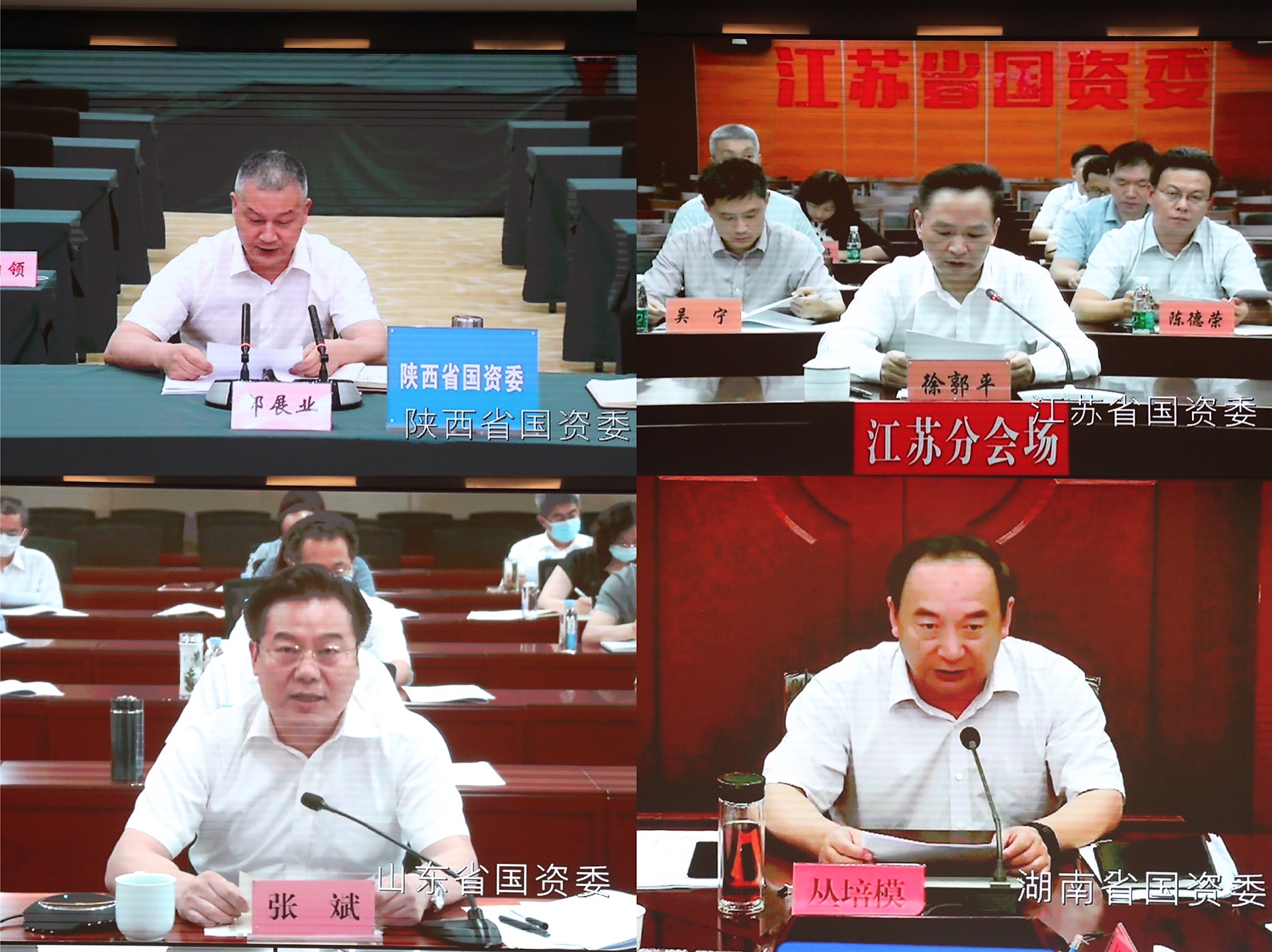 會上,陜西、江蘇、山東、湖南等4省國資委主要負責同志通過視頻會議系統作了交流發言。國務院國資委總會計師、副秘書長,駐委紀檢監察組,各廳局、直屬事業單位負責同志在主會場,各省、自治區、直轄市及計劃單列市和新疆生產建設兵團國資委負責同志在當地分會場參加會議。