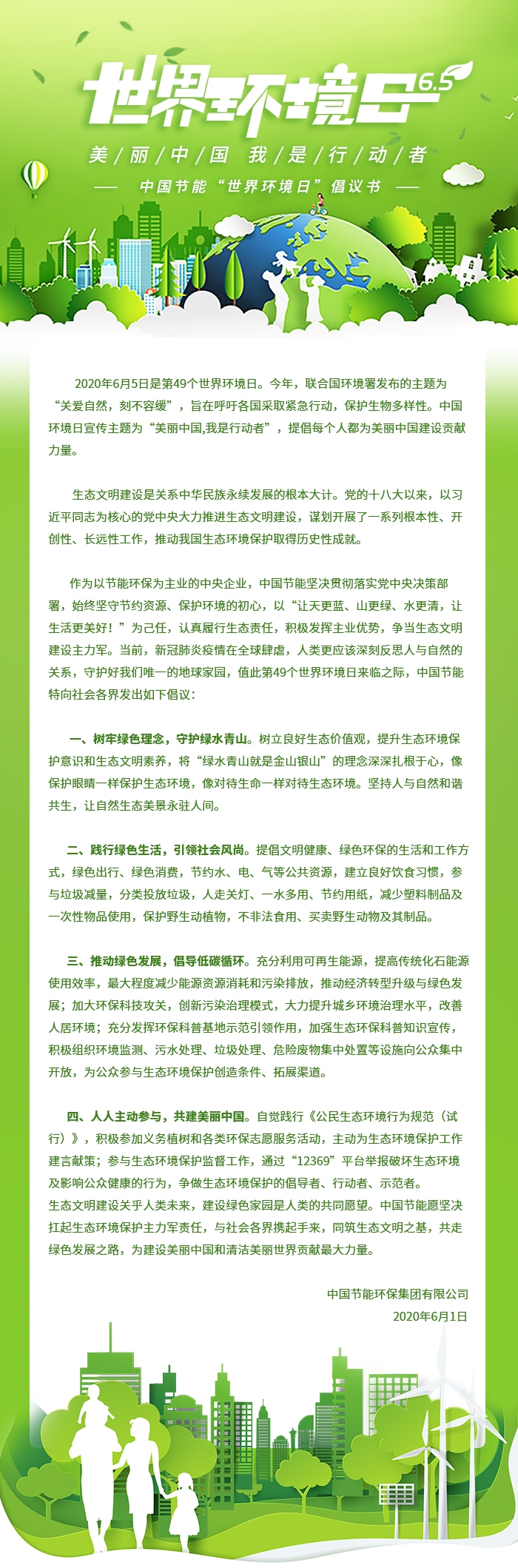 美麗中國(guó),我是行動(dòng)者 ——中國(guó)節(jié)能“世界環(huán)境日”倡議書