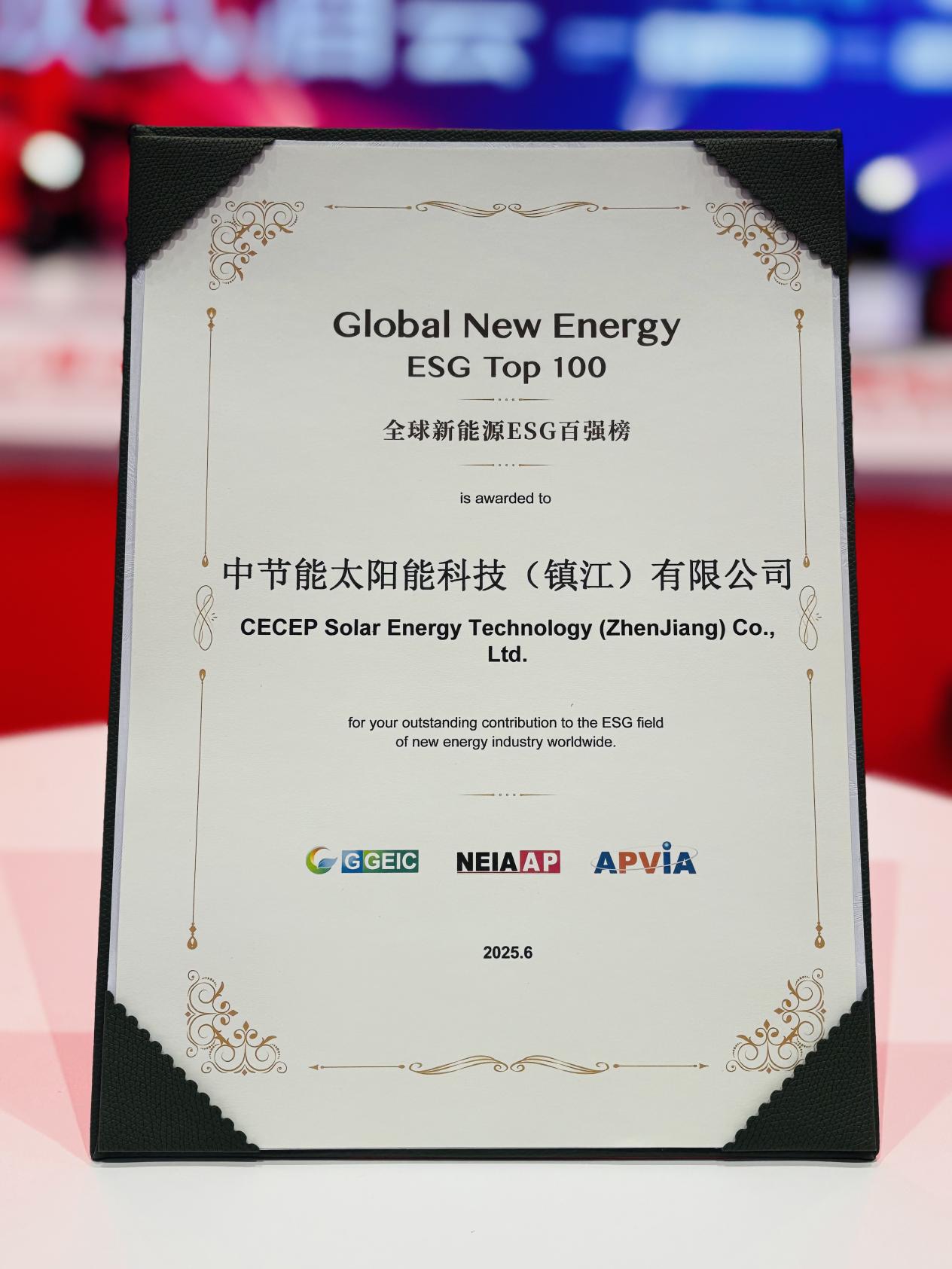 近日,在上海舉行的第十八屆SNEC光伏展期間,太陽能鎮江公司憑借在環境、社會及治理領域的扎實實踐與積極成效,成功入選“Global New Energy ESG Top 100全球新能源ESG百強榜”,其可持續發展努力獲得國際權威機構高度認可。