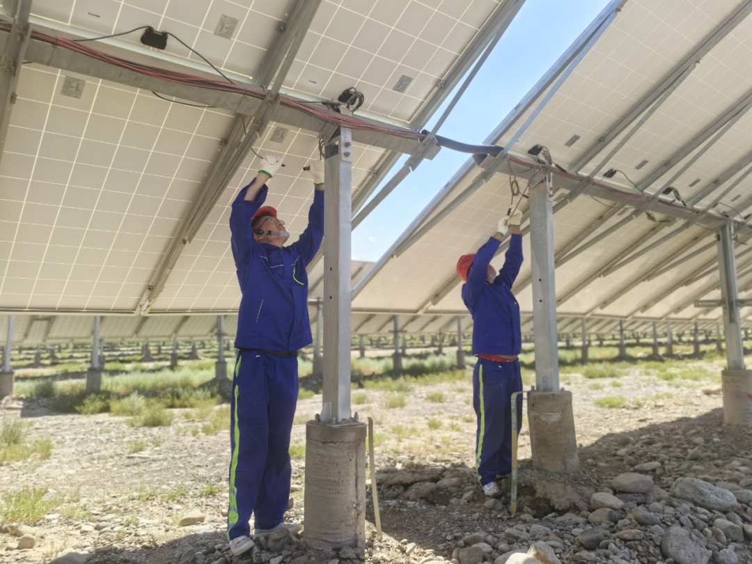 太陽能射陽電站運維人員正在進行組件排查工作 華中區域公司通過技術創新,全力做好迎峰度夏電力保供。所屬監利電站、萬年電站應用無人機巡檢技術,開展輸電外線隱患排查、故障支路修復及全線路防鳥刺安裝,使停電事故率降低50%以上,減少發電損失70萬千瓦時;貴溪電站完成39臺逆變器遮陽棚升級改造,預計全年增發電量31萬千瓦時、增收30萬元。 精管控降成本 細節挖潛見實效 新疆區域公司對設備采購、施工建設全鏈條進行精細化管控,實行24小時輪班作業,在嚴守安全質量底線前提下搶抓工期??灯巾椖?、撫順項目、三友項目于4月30日前順利并網,其中三友項目從開工至并網僅用39天,預計新增營業收入670萬元;第十二師產業園區低碳轉型50萬千瓦光伏項目正在有序建設中,為公司效益增長再添動能。