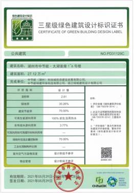中節能實業公司太湖首座榮獲三星級綠色建筑標識證書 |