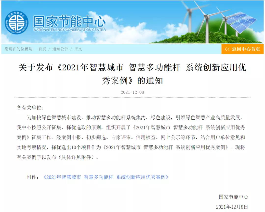 國(guó)家節(jié)能中心為推動(dòng)綠色智慧城市建設(shè),規(guī)范城市智能多功能燈桿系統(tǒng)的總體技術(shù)要求,提供智能多功能燈桿系統(tǒng)的規(guī)劃、設(shè)計(jì)、建設(shè)與運(yùn)維技術(shù)參考,公開(kāi)征集《智慧城市智能多功能燈桿系統(tǒng)創(chuàng)新應(yīng)用優(yōu)秀案例》。最終入選的案例需集中滿(mǎn)足了兩個(gè)條件:緊緊圍繞污染防治攻堅(jiān)戰(zhàn)、藍(lán)天保衛(wèi)戰(zhàn)等國(guó)家發(fā)展戰(zhàn)略以及推動(dòng)解決了技能技術(shù)推廣難的問(wèn)題,并且取得了顯著的經(jīng)濟(jì)、社會(huì)和環(huán)境效益,能助力我國(guó)節(jié)能環(huán)保事業(yè)開(kāi)辟新途徑。
