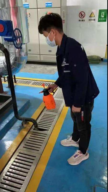 在換熱站進行消殺工作 每日上崗前進行體溫檢測