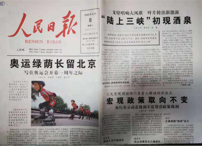 2009年12月25日,國家千萬千瓦級風(fēng)電基地裝機(jī)突破200萬千瓦調(diào)試并網(wǎng)發(fā)電儀式在中國節(jié)能玉門昌馬風(fēng)電場隆重舉行。時任甘肅省委書記陸浩、省長徐守盛和中國節(jié)能黨委書記陳津恩參加啟動儀式。中國節(jié)能承擔(dān)的國家千萬千瓦風(fēng)電基地啟動項目的重任向國家交出了滿意的答卷,被媒體譽(yù)為“風(fēng)一樣的中節(jié)能速度”“大漠戈壁的格桑花”。