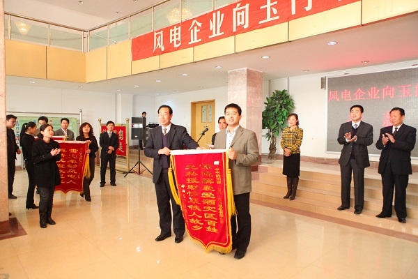 追憶到2008年,往昔的鐵人故鄉(xiāng),中節(jié)能風(fēng)電以超人的膽識(shí)與智慧,逐鹿河西走廊,改寫著曾經(jīng)“春風(fēng)不度玉門關(guān)”的豪言,勇奪國(guó)家第一個(gè)千萬(wàn)千瓦級(jí)風(fēng)電基地啟動(dòng)項(xiàng)目——甘肅玉門昌馬20萬(wàn)千瓦風(fēng)電特許權(quán)項(xiàng)目,從此展開了中國(guó)節(jié)能在西北大漠的創(chuàng)業(yè)歷程。春風(fēng)化雨,從2009年4月20日首臺(tái)風(fēng)機(jī)吊裝到11月19日為國(guó)家首個(gè)千萬(wàn)千瓦風(fēng)電基地送出第一度電,在不到一年的時(shí)間里化荒蕪戈壁為生機(jī)無(wú)限,讓綠色風(fēng)能點(diǎn)亮萬(wàn)家燈火,被各大媒體譽(yù)為“風(fēng)一樣的中節(jié)能速度”。