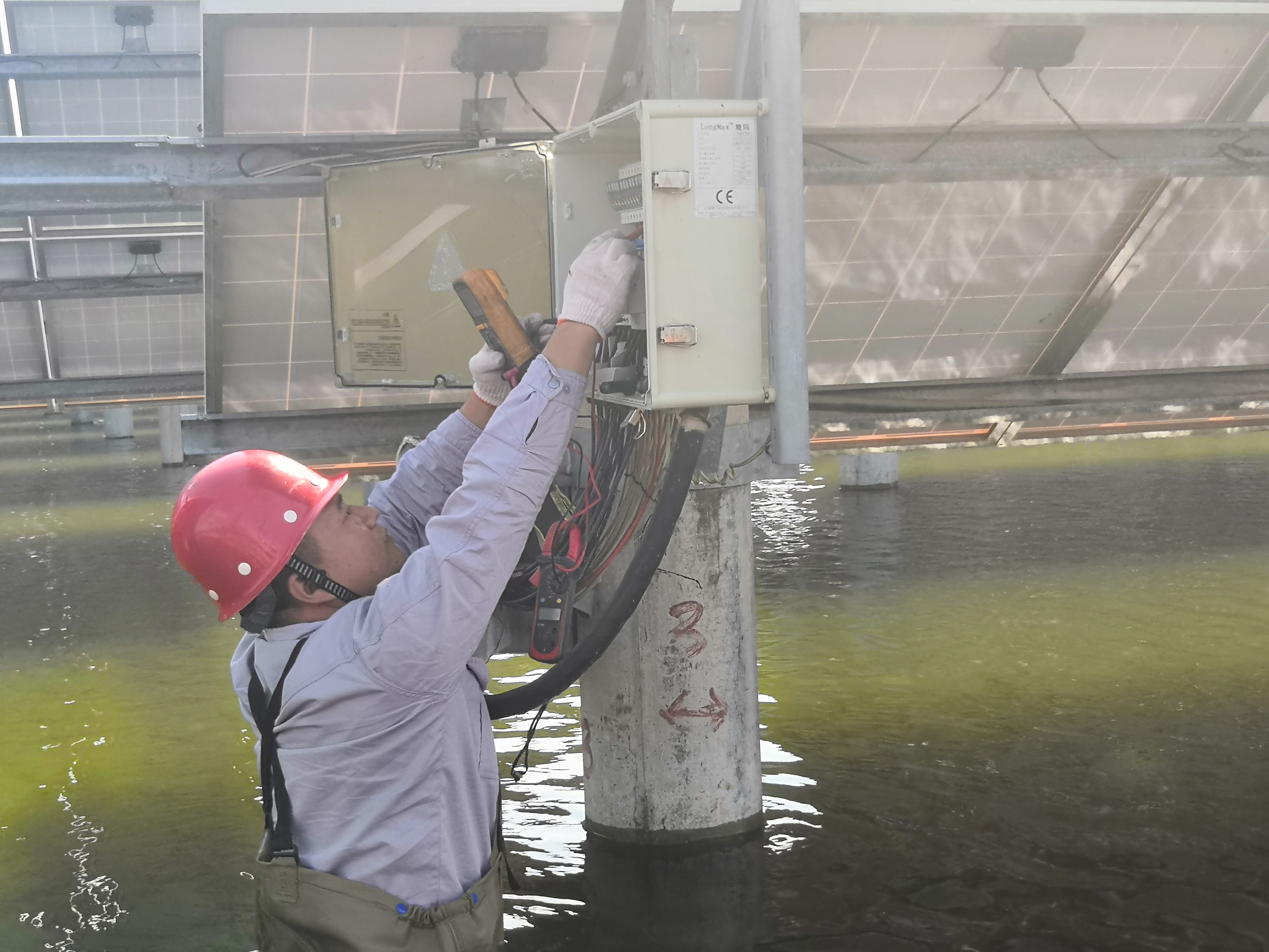 2011年,東臺電站成立之初,國家要求電站一期二期項目年底完成并網,如果不及時完成那么公司將會因電價補貼減少損失兩千多萬,而距離這最后期限只剩三個月。時任東臺電站運行部值班長的劉加勇充分發揚黨員精神,“臨危請命”,首先協助團隊辦理各類手續資料,保證電站手續的不出差錯,之后電站進入消缺階段,小至太陽板的螺絲加裝平墊和彈墊,大至箱變高壓側絕緣加強解決放電事故,他都能以較好的專業知識在現場給予指導,配合總包方提前完成了消缺工作。茫茫的海面上,無數太陽能板在烈日下映射著劉加勇面朝海水背浸濕的身影,抬頭是密密麻麻的“森林”,俯身是暴曬潮濕的水面。連續三個月劉加勇夜以繼日地檢查每一塊發電板,保證每一個板塊的正常運行,全力投入這場與時間的爭奪戰中,最終東臺電站順利在年底完成并網。