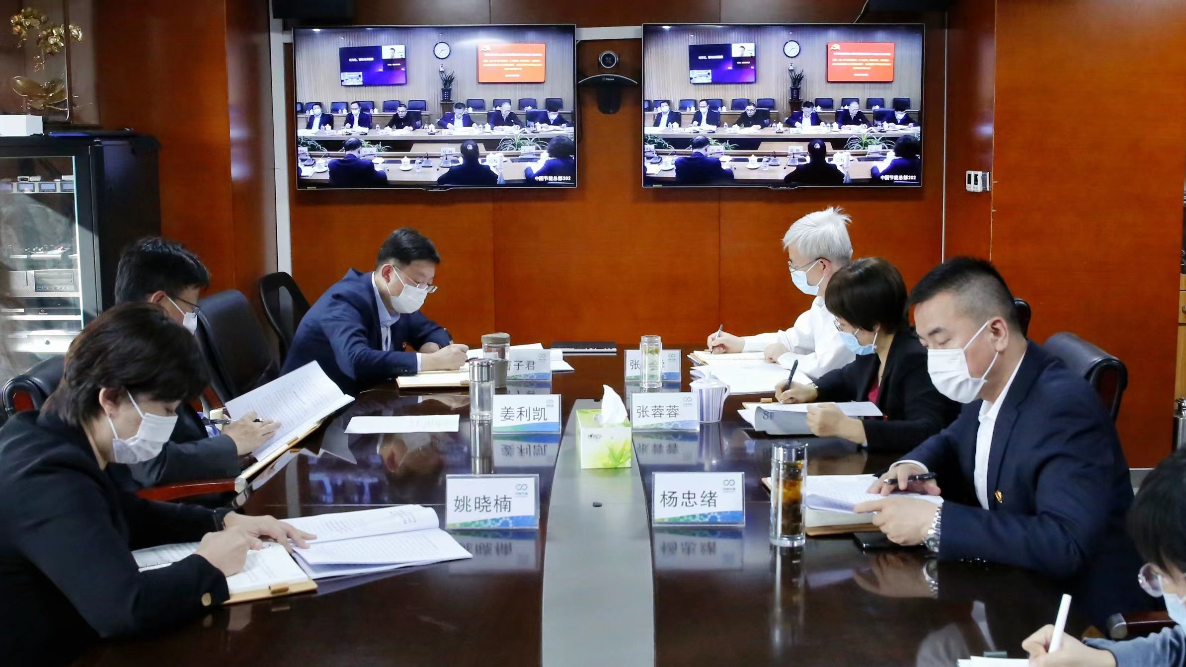 公司黨委提前謀劃部署,強化組織領導,為大會精神的學習宣貫奠定良好基礎。在組織全體黨員干部集中收聽收看大會開幕式盛況基礎上,10月17日,公司召開2022年三季度經營分析會,組織公司本部中層以上黨員干部、各大區子公司班子成員集體學習黨的二十大工作報告,公司黨委書記董事長在講話中強調,各級黨組織和黨員干部要原原本本、學深悟透報告精神,牢記大會主題和報告中向全黨同志提出的“三個務必”號召,深刻認識新時代十年來經歷具有重大現實意義和深遠歷史意義的“三件大事”,全面了解十年來黨同人民一道拼出來、干出來、奮斗出來的“十六項成就”,深刻理解新時代新征程中國共產黨以中國式現代化全面推進中華民族偉大復興的使命任務,堅定不移踐行職責使命,切實用黨的二十大精神武裝頭腦,指導工作。10月24日,公司黨委理論學習中心組參加集團公司黨委第二次聯學會,圍繞“深入學習貫徹黨的二十大精神,踔厲奮發,勇毅前行,為全面建設社會主義現代化強國、全面推進中華民族偉大復興貢獻中國節能力量”進行集中研討。中心組成員一致認為要肩負起實現碳達峰碳中和目標的歷史使命,錨定“三新兩保一推進”目標,持續深化科技創新成果,加快企業數智化建設,推動公司高質量發展,在新時代能源革命中作出我們應有的貢獻。