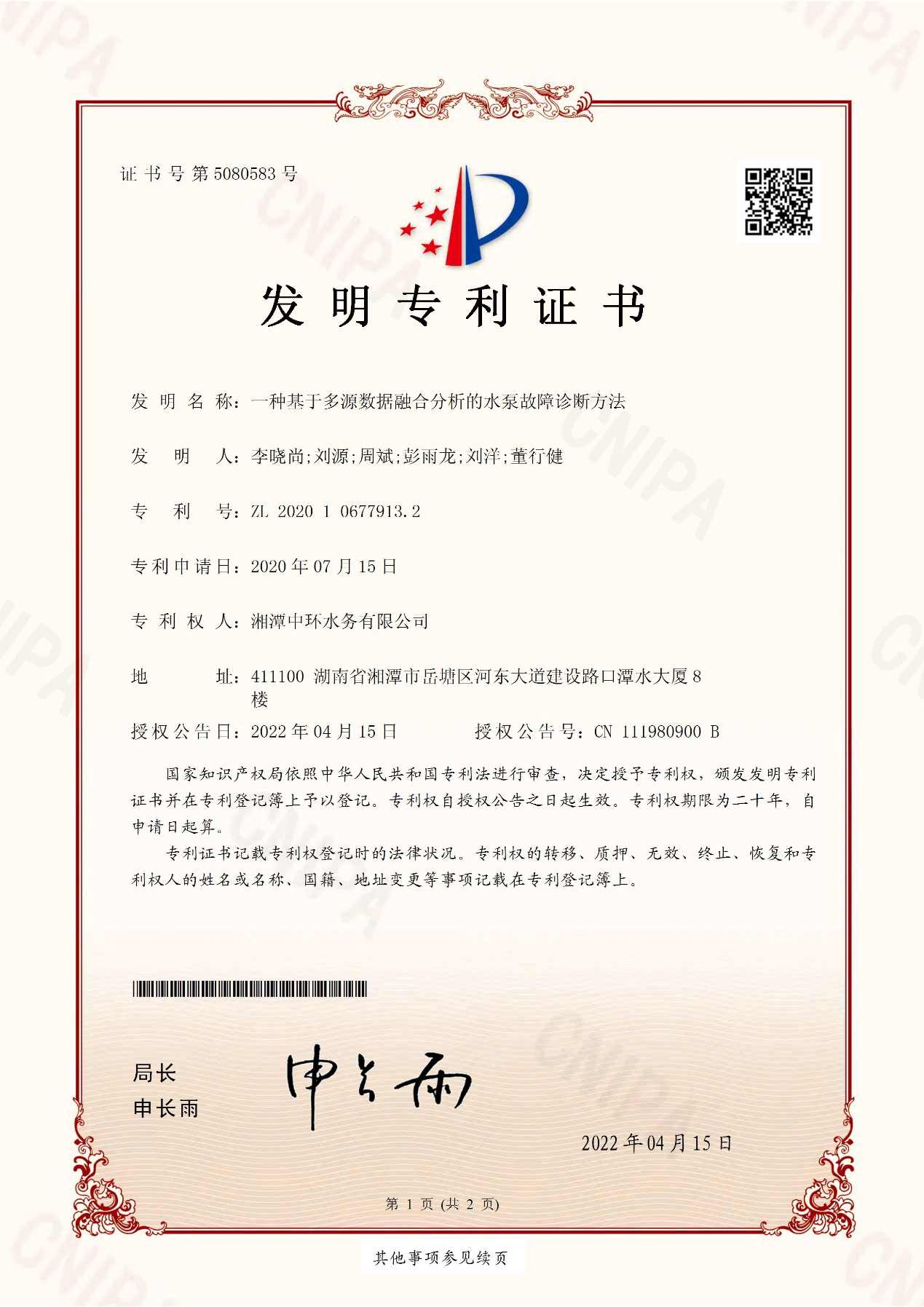 近日,依托中環(huán)水務(wù)牽頭承擔(dān)的2020年度集團(tuán)公司重大科技創(chuàng)新項(xiàng)目《智能水廠整體工藝方案》與《生態(tài)型村鎮(zhèn)污水處理技術(shù)工藝包》的技術(shù)成果,“一種基于多源數(shù)據(jù)融合分析的水泵故障診斷方法”和 “一種蠕蟲床化糞池”兩項(xiàng)發(fā)明專利獲得國(guó)家知識(shí)產(chǎn)權(quán)局授權(quán)。