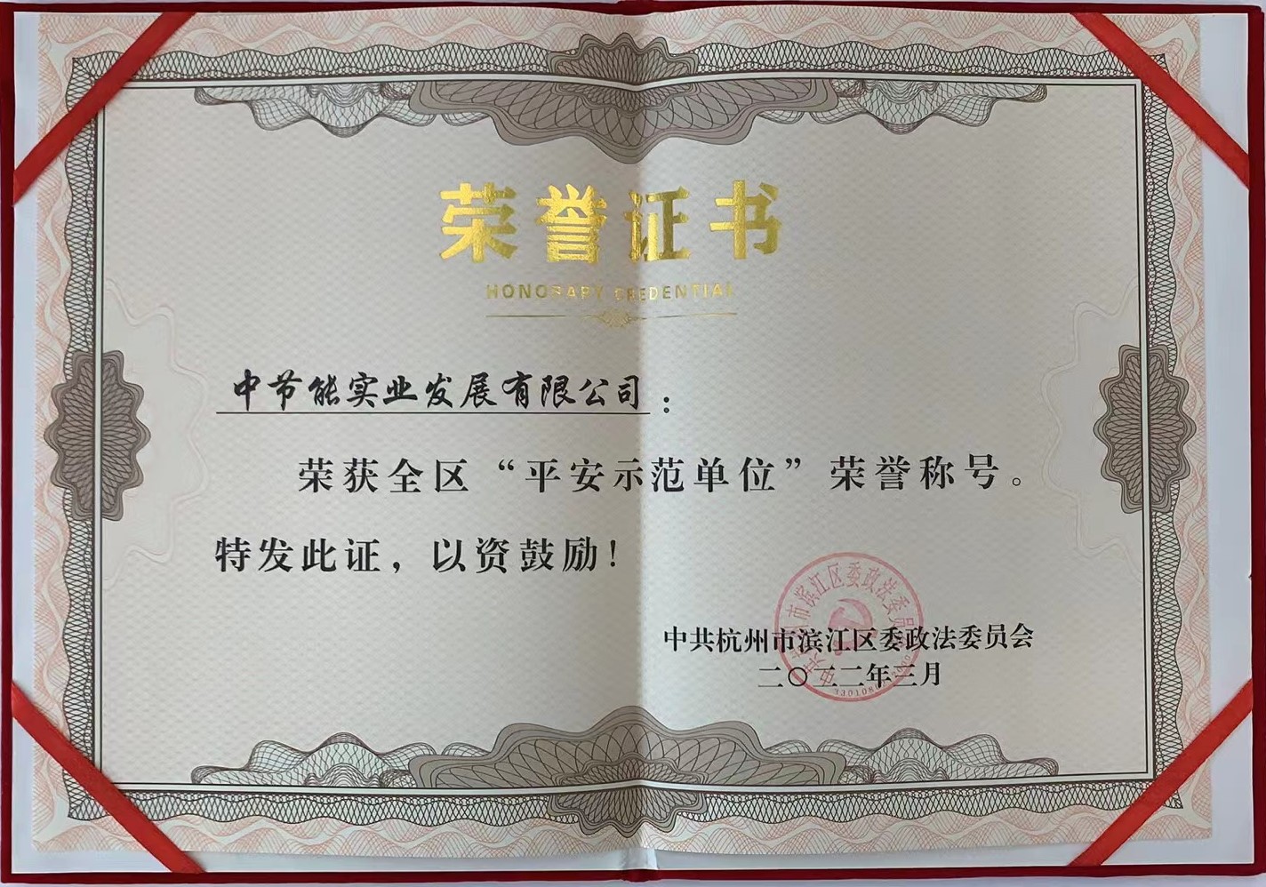 近日,在杭州市高新區(qū)(濱江)召開的“平安”專項工作會議上,中節(jié)能實業(yè)公司獲評杭州市濱江區(qū)平安建設(shè)示范單位。