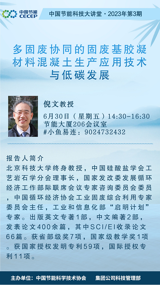講座主題:多固廢協同的固廢基膠凝材料混凝土生產應用技術與低碳發展