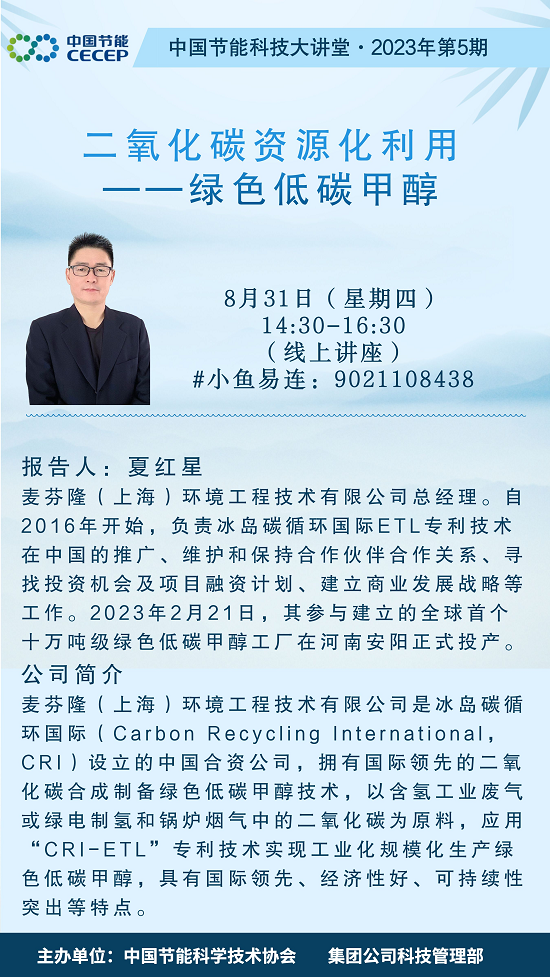 為加強綠色低碳技術交流,促進戰略性新興領域和行業前沿領域產業技術合作,集團公司科技管理部、中國節能科協特邀請麥芬隆(上海)環境工程技術有限公司(以下簡稱麥芬隆公司)總經理夏紅星先生于2023年8月31日作科技大講堂專題講座。現將有關事項通知如下: