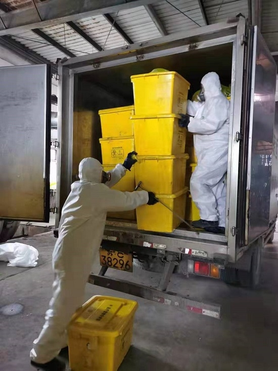 強(qiáng)調(diào)醫(yī)療廢物收運(yùn)及處置安全要求 疫情就是命令,狠抓落實(shí)保安全 自1月21日起,徐州公司疫情應(yīng)急小組每日召開(kāi)調(diào)度會(huì),及時(shí)傳達(dá)各級(jí)環(huán)保部門及上級(jí)單位相關(guān)文件,掌握疫情動(dòng)態(tài),并上報(bào)應(yīng)急處理及防控情況;班組每日召開(kāi)晨會(huì)強(qiáng)調(diào)醫(yī)療廢物收運(yùn)及處置安全要求;確保各項(xiàng)應(yīng)急物資供應(yīng)、到位;根據(jù)疫情情況,每日增加對(duì)廠區(qū)、處置車間的消毒次數(shù)。 1月25日,在得知徐州已有確診病例后,公司立即啟動(dòng)應(yīng)急預(yù)案及相關(guān)措施:一是合理調(diào)整及安排人員休假,保證各項(xiàng)工作調(diào)度有序;二是在保障處置醫(yī)療廢物能力的同時(shí),調(diào)整醫(yī)療廢物處置工藝,減少員工與醫(yī)療廢物接觸頻次;三是嚴(yán)格執(zhí)行醫(yī)療廢物和相關(guān)設(shè)施的消毒工作,對(duì)操作人員的防護(hù)和體溫進(jìn)行持續(xù)監(jiān)測(cè);四是做好員工的思想工作,穩(wěn)定員工隊(duì)伍,并做好隔離防護(hù);五是及時(shí)掌握疫情發(fā)展動(dòng)態(tài),對(duì)已有確診病例的醫(yī)院安排專人、專車收集,減少直接接觸;六是拓寬防護(hù)物資采購(gòu)渠道,切實(shí)保障物資供應(yīng),同時(shí)做好出入庫(kù)登記。