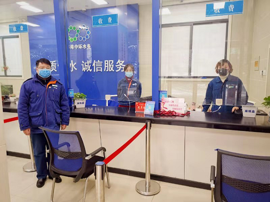 營業總所大廳堅持節日營業,并做好消毒與防護措施 疫情就是挑戰 春節期間,領導班子靠前指揮、率先垂范,蚌埠水務公司防控工作領導小組組長王強堅持每天到崗值班,隨時了解疫情發展、接受上級指示,下達一線指令。固鎮中環黨支部書記、總經理趙宏過完除夕立刻從蚌埠家中趕到固鎮值守,堅持在一線處理問題。一市三縣各單位負責人全面摸排調查身在外地員工情況,每日及時掌握部門員工身體狀況和周邊疫情,堅持日報告制度,實現員工情況實時全覆蓋。面對疫情挑戰,廣大黨員身先士卒,堅持在生產一線、用戶服務窗口發揮先鋒模范作用。1月27日,蚌埠市龍湖春天小區二次供水因中壓管道漏水造成一棟高層樓房停水,管線所四名黨員現場查找漏點、使用應急送水車為用戶臨時送水,工程一處黨支部書記周長征帶領項目經理、黨員馬強等同志趕到現場維修漏水管道,工程三處二名黨員帶領二名員工在二供泵房內配合檢修復水,當天深夜恢復供水,真正把黨旗插在一線,把黨的溫暖送到用戶家中。